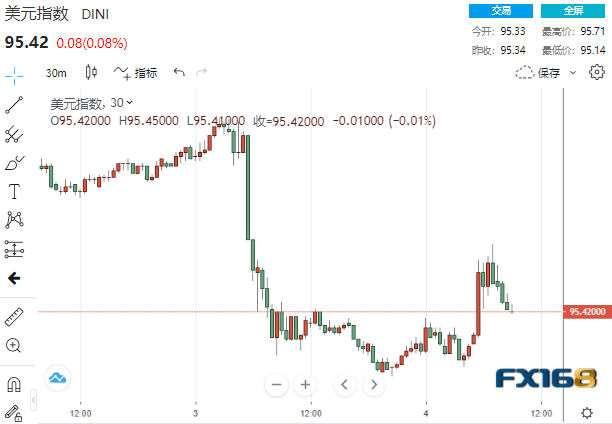 (美元30分钟走势图,来源:FX168)