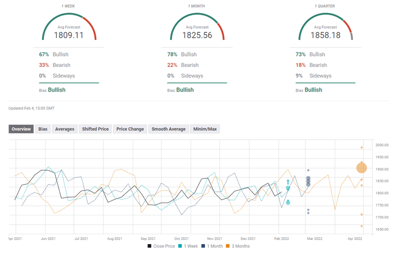 FXStreet Forecast民意调查显示,黄金的看涨倾向在短期内没有改变,但一周目标价为1809美元,暗示没有太多上行空间。