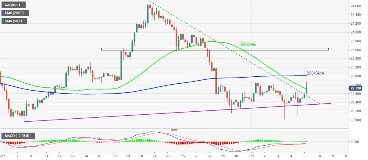 24K99讯 周一(2月7日)亚市盘中,现货白银显著上涨,现报22.70美元/盎司附近,日内大涨近1%。知名财经网站FXStreet分析师Anil Panchal周一最新撰文,对银价技术前景进行分析。Panchal指出,假如银价攻克关键阻力23美元/盎司,后市有望再大涨。