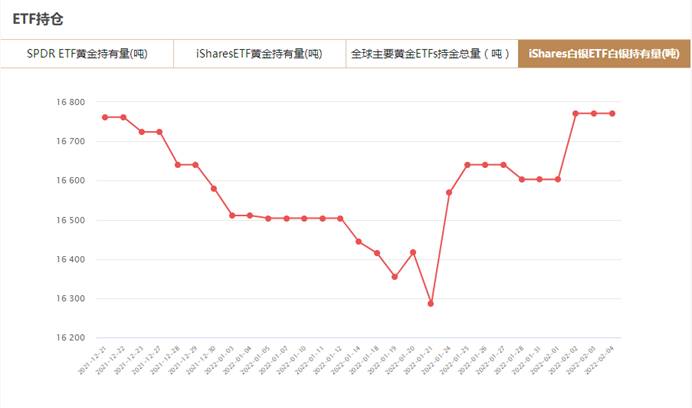 iShares白银ETF2月4日白银持有量为16771.39吨,与上一交易日持平。