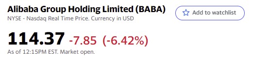 FX168财经报社(北美)讯 因怀疑遭软银集团抛售,周一(2月7日)阿里巴巴在美股交易中大跌近7%。截至发稿,该股下跌6.42%至114.37美元。
