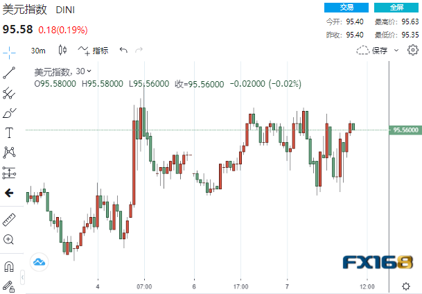 (美元指数30分钟走势图,来源:FX168)