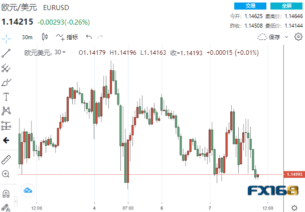 (欧元/美元30分钟走势图,来源:FX168)