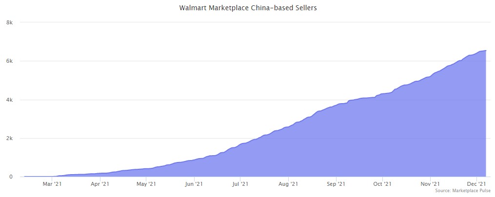 2021年3月开始,不断有中国电商进驻沃尔玛,统计到2021年12月电商数增至6000家以上。有电商利用沃尔玛的代理发货服务,用户无法清楚得知卖家来历。