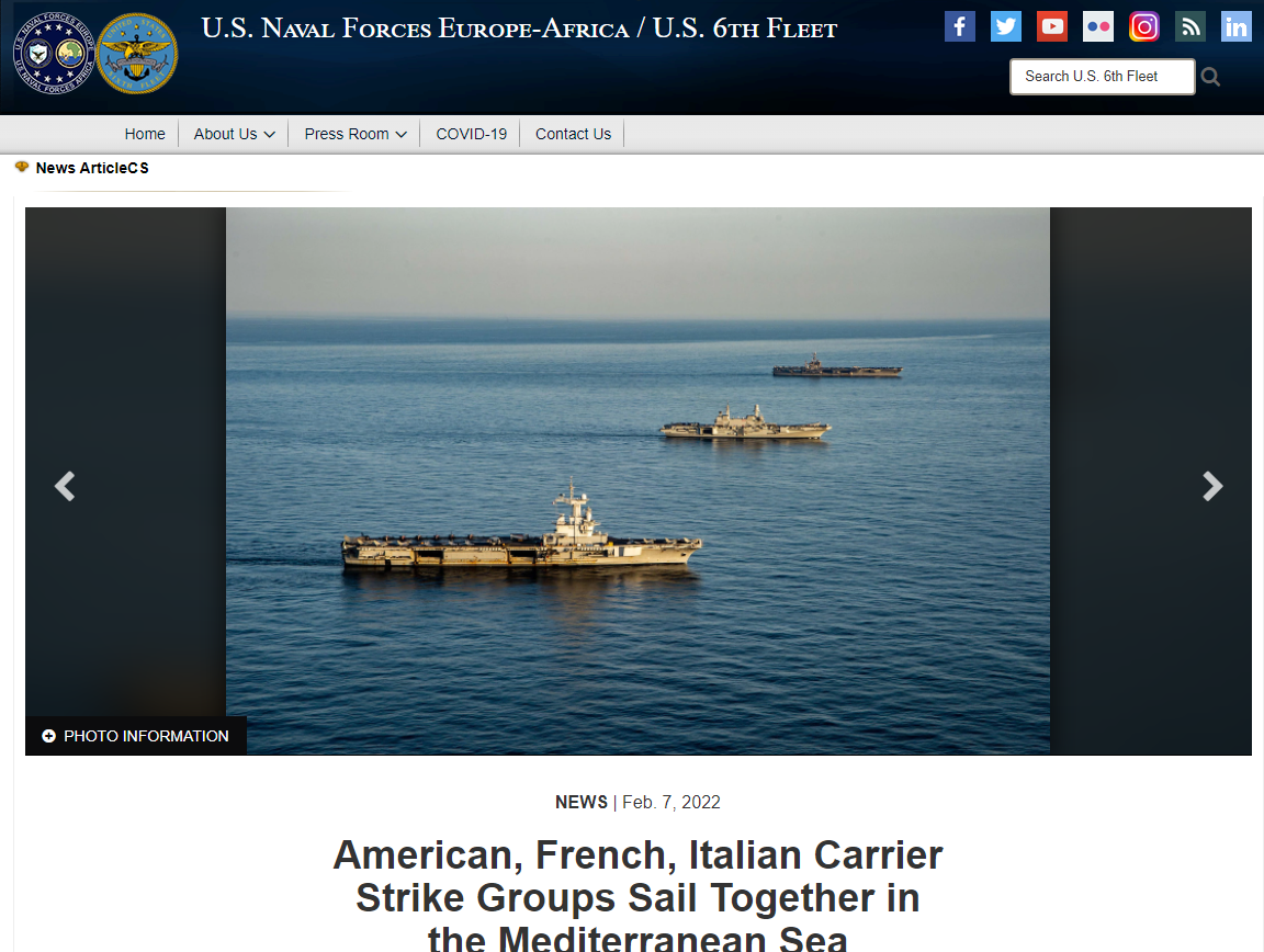美国“杜鲁门号”航舰打击群(HSTCSG)于2月6与7日,联合法国“戴高乐号”特遣队、意大利“加富尔号”航舰打击群一同在地中海进行联合演训。美军第六舰队强调,美法意3国海军成员时常一同行动,为区域安全促进合作,此次演训机会也促使3国海军进行高强度操演,强化合作能力。