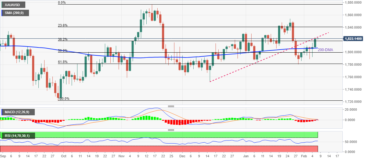 24K99讯 周二(2月8日)亚市盘中,现货黄金维持升势,现报1822美元/盎司附近。知名财经网站FXStreet分析师Anil Panchal周二最新撰文,对金价技术前景进行分析。Panchal指出,假如攻克关键阻力区域1828-32美元/盎司,金价有望刷新今年高点。