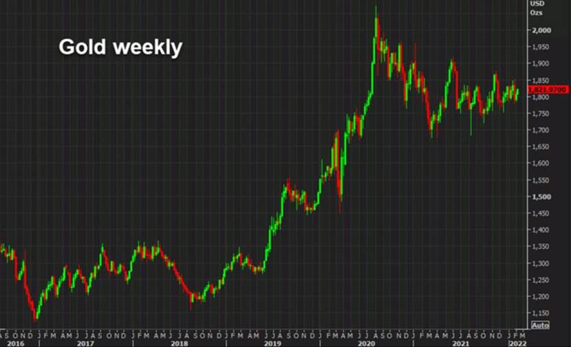 该机构指出,现在,各国央行正在加速加息,这应该会对黄金造成损害。人们还担心,一旦入侵乌克兰并受到制裁,俄罗斯会出售其大量储备中的一部分。不过,黄金今年保持坚定步伐,从去年12月31日的1828美元跌至1822美元。