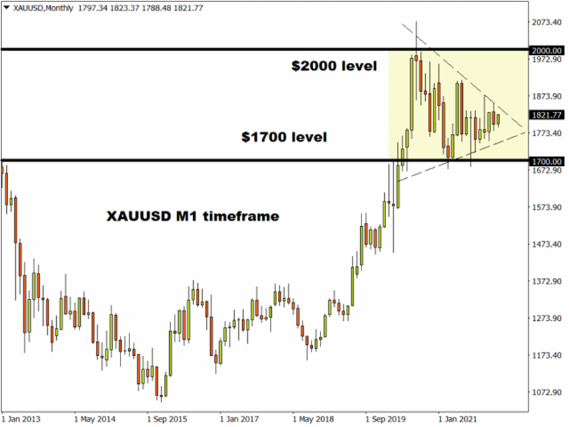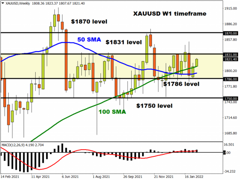 从技术面来看,黄金价格在周线图上被困在一个很大的区间内,支撑位在1786美元,阻力位在1831美元。另一个支撑位在1750美元,阻力位在1870美元。