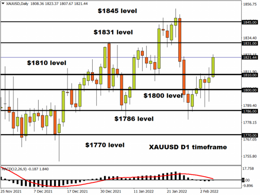 对通胀的担忧加剧,俄罗斯和乌克兰之间的紧张局势加剧了投资者向安全资产的转移,黄金似乎因此而走强。尽管本周一开始牛市就占据了主导地位,但问题是:这种情况会持续多久?