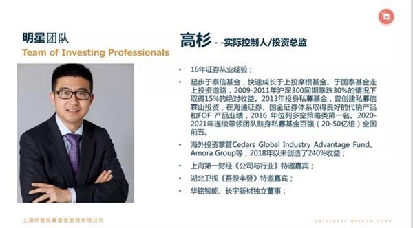 资料显示,高杉出生于1982年,毕业于山东轻工业学院,拥有超过16年的证券从业经验,业绩斐然,2021年8月27日刚刚成为上海环懿私募的实控人、投资总监,截至2021年末公司在管产品43只,规模40亿元。