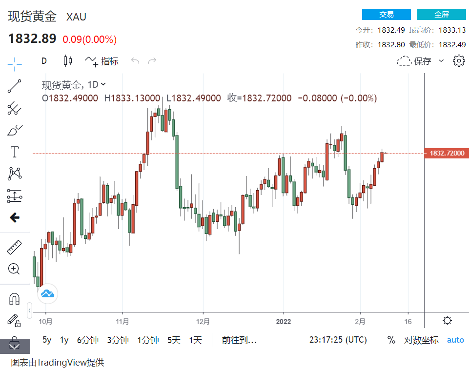 24K99讯 美国CPI关键通胀数据唱响前,美元与美债收益率双双回落,黄金价格徘徊1830美元上方,本日亚盘报在1832.89美元。美联储与欧洲央行的政策前景受到质疑,美元指数略微下滑,而欧元则从欧洲央行近日立场转鹰获得动能,再次呈上扬走势。美国原油汽油库存均降,刺激油价收高,但WTI原油未能突破90美元。