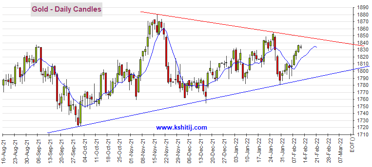 24K99讯 周五(2月11日)亚市盘中,黄金期货维持跌势,目前已经跌破1825美元/盎司,已经自周四美国CPI后短暂触及的高点1843.30美元/盎司回落近20美元。Kshitij咨询服务团队(Kshitij Consultancy Service)周五最新撰文,对黄金期货、白银期货、原油期货和铜期货后市走势进行前瞻分析。