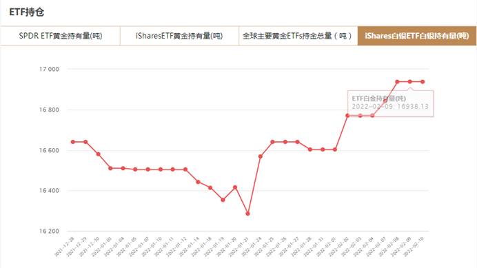 iShares白银ETF2月10日白银持有量为16938.13吨,与上一交易日持平。