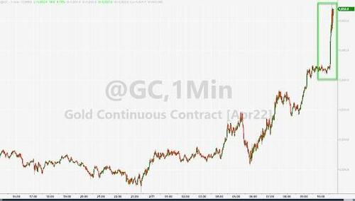数据显示,黄金受到大量资金瞬间涌入的提振: