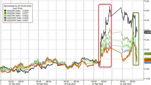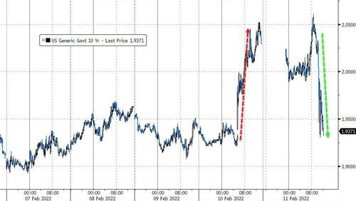 在此背景下,10年期美国国债昨日受到重击,收益率上升了15个基点……然后一些关于俄罗斯即将入侵的传言不断传来,收益率又回落了13个基点……