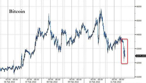 在布拉德的评论后,比特币上涨了近4.6万美元,在俄罗斯的头条新闻后,今天又跌回近4.2万美元……