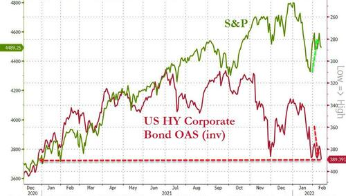 随着大规模曲线趋平,美国国债收益率本周飙升,短期国债收益率暴增27个基点——这是自《沃尔克规则》(Volcker)以来的最高水平,而长期国债收益率也受到了影响(30年期收益率上涨12个基点)。但随后的“俄罗斯入侵”消息导致收益率大幅下跌(但本周仍在上升),30年期国债收益率仅收高4.5个基点(而短期国债收益率仍是一团糟)……