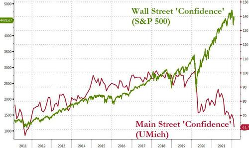 考虑到美国股票估值达到了前所未有的高水平(再加上美国消费者信心的崩溃),许多人意识到这一点,想知道这两条线到底会交汇在哪里。