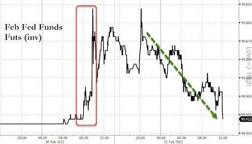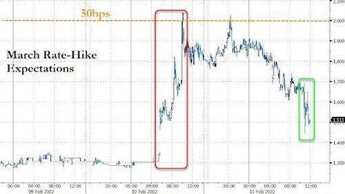 值得注意的是,3月加息的可能性也在快速下滑,或许是考虑到最近的地缘政治恐慌——据白宫称,普京将在几天内入侵。