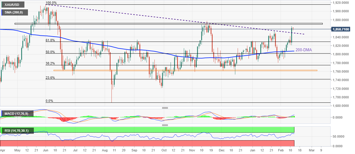 24K99讯 周一(2月14日)亚市早盘,现货黄金维持坚挺,金价目前交投在1860美元/盎司上方。知名财经网站FXStreet分析师Anil Panchal周一最新撰文,对金价技术前景进行分析。Panchal指出,若突破1873美元/盎司附近的阻力区域,金价有望飙升至1900美元/盎司。