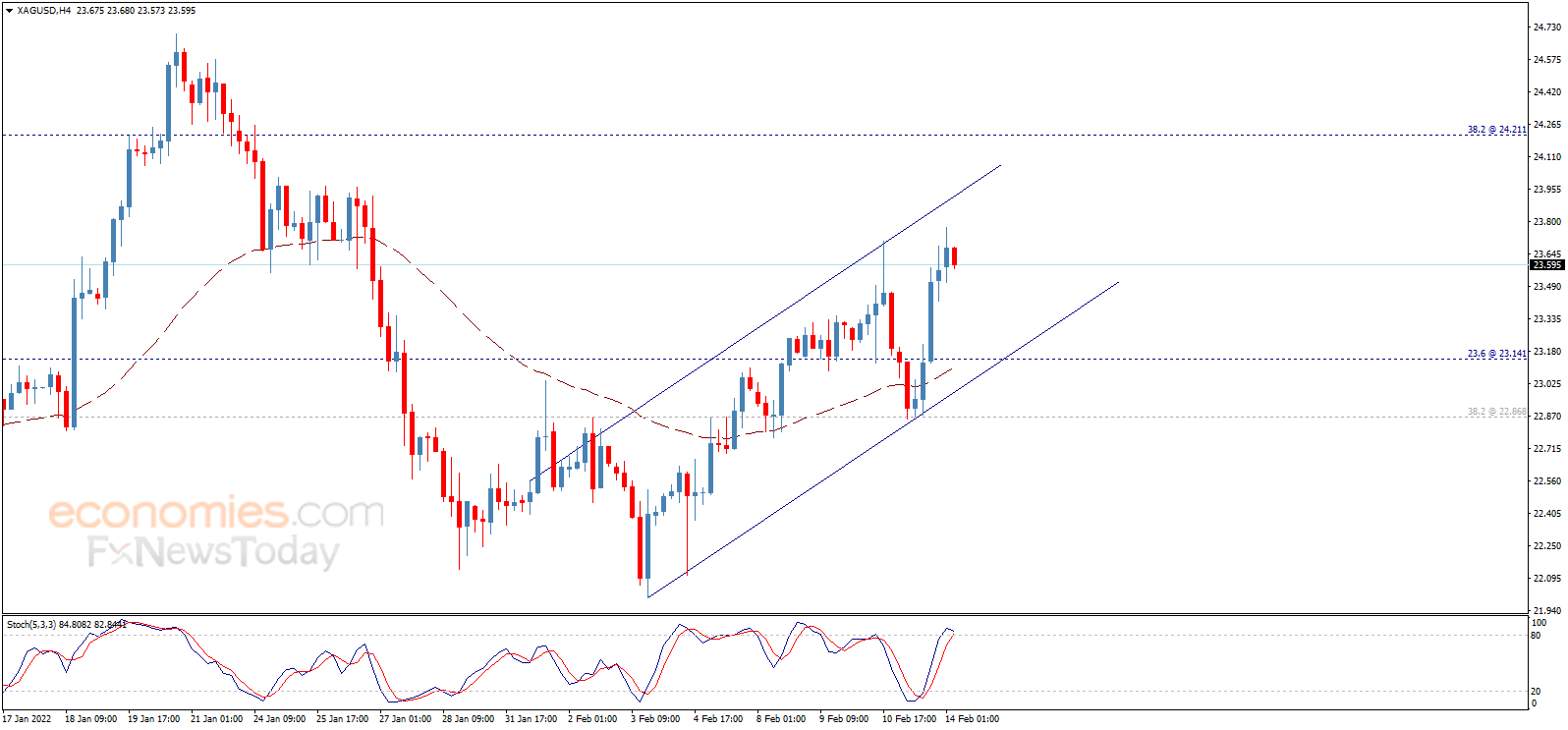 24K99讯 周一(2月14日)亚市尾盘,现货白银维持升势,银价目前位于23.60美元/盎司附近。知名财经资讯网站Economies.com周一最新撰文,对日内白银走势进行前瞻分析。