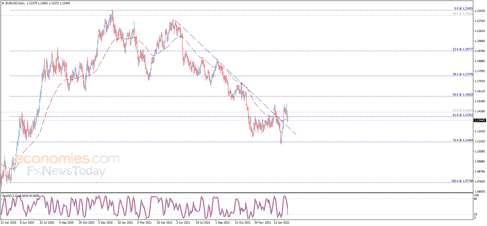 从4小时图来看,随机指标支持欧元/美元延续跌势。除非反弹突破1.1375并维持在该位上方,否则看空预期仍将有效。