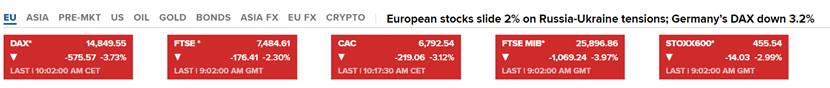 七国集团财长声明:对俄罗斯在边境集结军队表示严重关切。准备迅速采取行动以支持乌克兰。准备集体实施经济和金融制裁,这将对俄罗斯经济产生巨大和直接的影响。