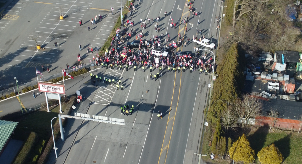 上周末,反疫苗抗议人群在大温也开辟了新的“战场”,不止到处游行,而且向安省的同伴们学习,把BC省到美国的过境点也给堵了。