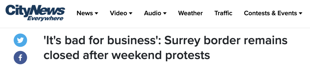 不少需要过境的司机因此耽搁了行程。美国华盛顿州一家物流公司的工作人员Jerry Segismundo 说,他们的司机已经在BC省的过境点被堵了45分钟,而且对何时才能通行毫无头绪。现在他们不得不致电给客户道歉,准备改道从另一个过境点来加拿大。
