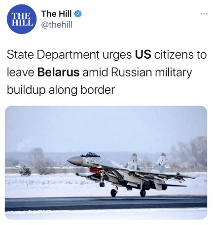 美国国务院在一份声明中说:“由于俄罗斯在与乌克兰边境附近的军事活动异常增多,居住在或考虑前往白俄罗斯的美国公民应该意识到,局势是不可预测的,该地区的紧张局势正在加剧。针对外国人的潜在骚扰也是可能的。鉴于局势的高度动荡,强烈建议美国公民不要前往白俄罗斯。”