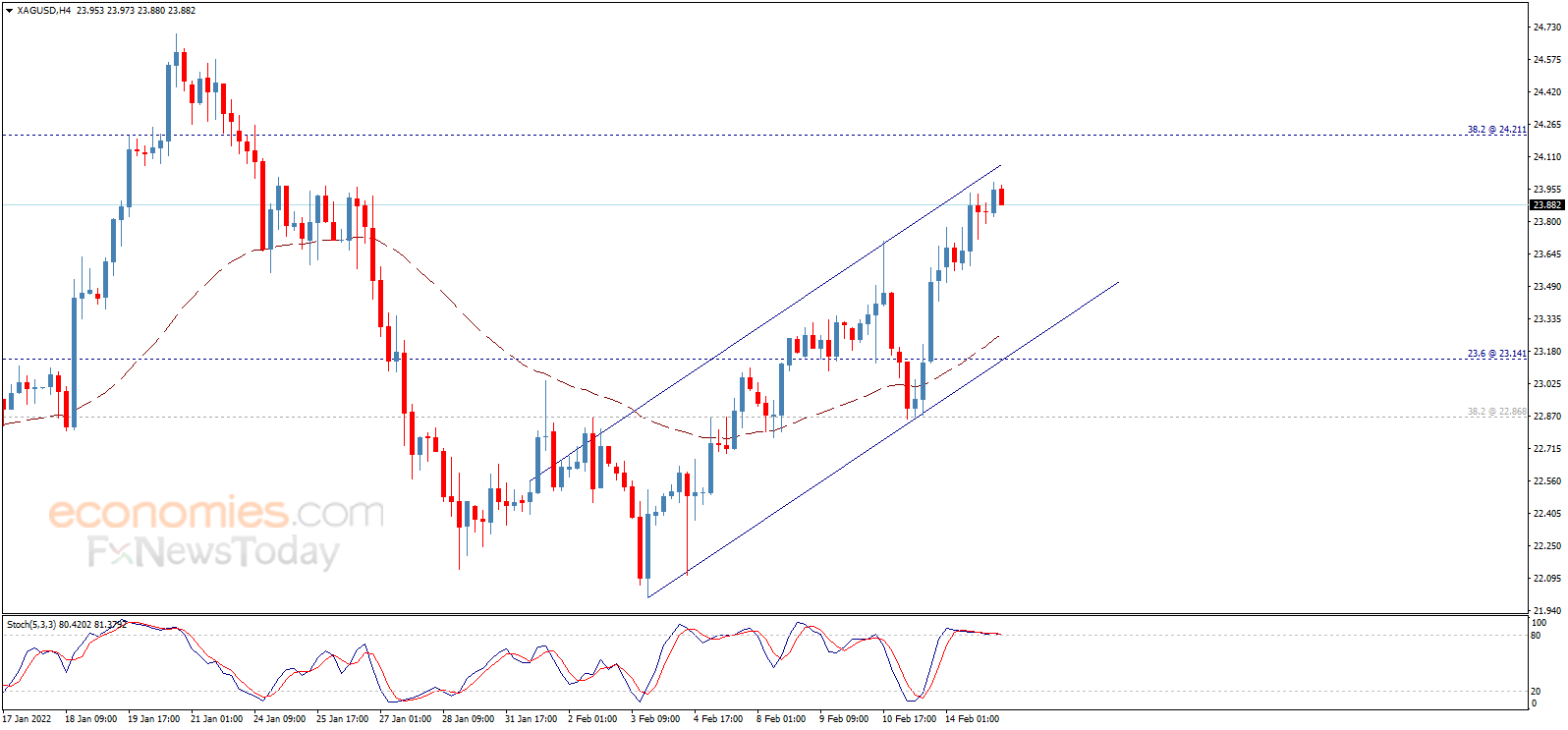 Economies.com预计,今日银价交投将位于支撑位23.60美元/盎司以及阻力位24.30美元/盎司之间。