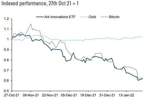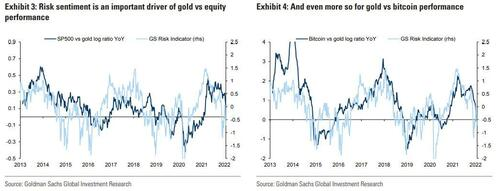 事实上,风险情绪已经开始恶化,而我们的投资组合策略师认为,挑战性的增长和通胀组合将使短期波动性上升。重要的是要记住,风险厌恶是黄金相对于股票、更大程度上是相对于比特币等资产的投资兴趣的主要驱动因素。