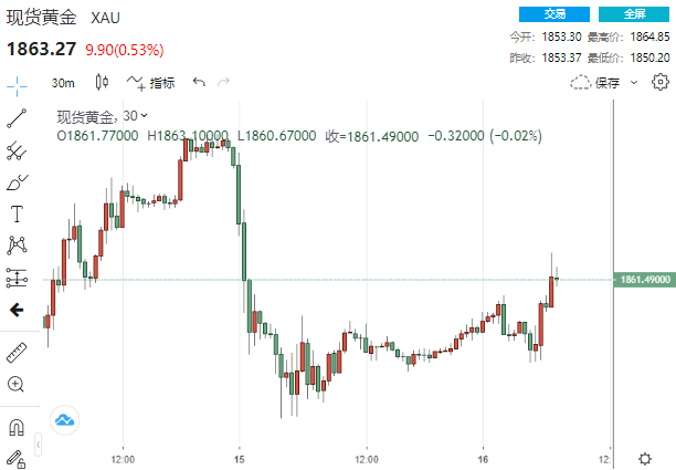 数据公布之后,现货金短线拉升13美元,刷新日高至1864.85美元,但仍低于上一交易日触及的8个月高位回落1879.48美元。