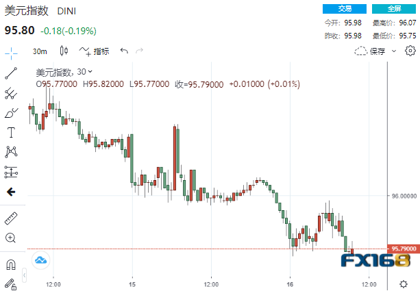 FX168财经报社(北美)讯 周三(2月16日)美市盘中,尽管日内公布的美国零售销售数据表现强劲,但美元指数却持续走低,并刷新日低至95.75;随着美元回落,现货黄金大幅拉升近20美元,直逼1870美元关口;美股三大股指持续下跌,其中道指下挫近300点。眼下,市场静待美联储公布1月会议的纪要。此外,俄乌局势也继续牵动市场神经。俄罗斯发视频坚称已从乌克兰边境撤出部分军队,不过北约仍对此持怀疑态度,称俄罗斯仍在继续曾兵。