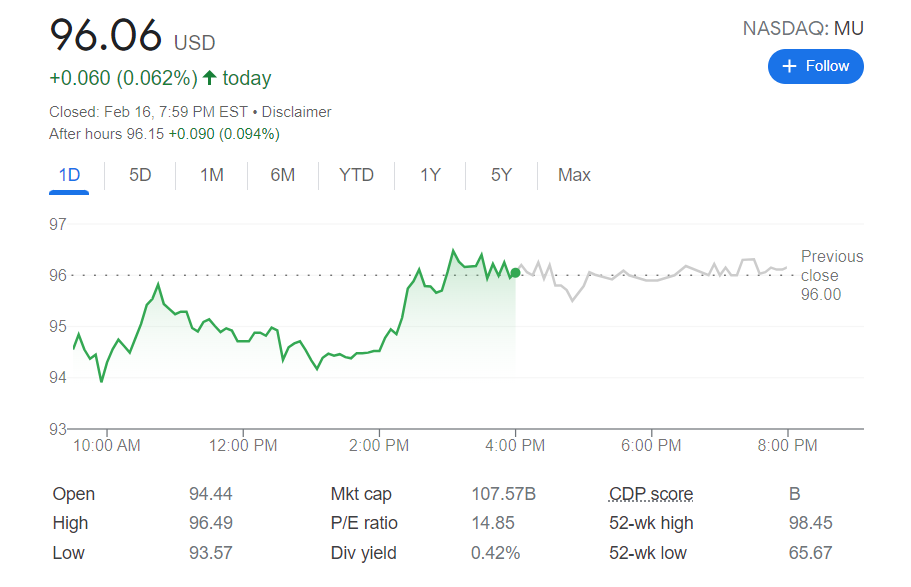 截至周三纽约收盘,美光(MU)美股股价涨幅0.062%,收报96.06美元。近半年来,美光股价已经累计涨幅35.72%。