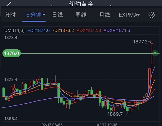纽约商品交易所(COMEX)4月交割的黄金期货价格收盘上涨15.30美元,涨幅0.8%,报1871.50美元/盎司。为最活跃黄金期货自2021年6月11日以来最高收盘价。3月交割的白银期货收盘上涨1.1%,报23.605美元/盎司。