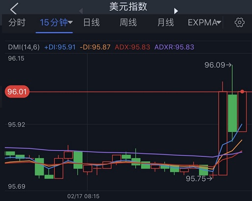 (美元指数15分钟图 来源:FX168)