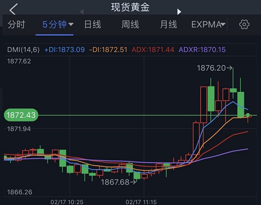 (现货黄金15分钟图 来源:FX168)