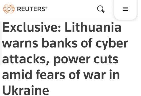 据路透社周四(2月17日)报道,一份文件和两名消息人士称,随着俄罗斯与乌克兰的对峙可能演变为军事冲突,立陶宛央行已要求该国的银行业者为断电和遭到网络攻击做好准备。