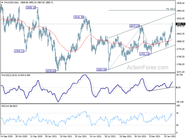 ActionForex.Com写道,金价周四上涨,并突破前高1879.24美元/盎司。只要金价守住支撑位1844.30美元/盎司,那么预计金价将进一步反弹。