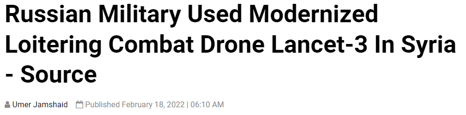 一位军事和外交消息人士向俄媒披露,俄罗斯武装部队已经使用现代化版本的Lancet-3巡航无人机来对付叙利亚的恐怖分子。消息人士说:“作为测试的一部分,俄罗斯军队多次使用新版本的Lancet-3游荡弹药来对付叙利亚的恐怖分子阵地。”