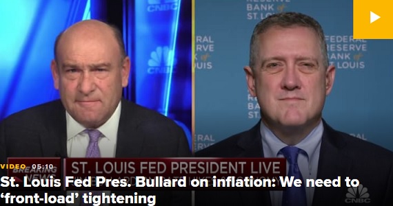 在周四的讲话中,布拉德重申了他的主张,即美联储应该“提前”加息,以应对过去一年以7.5%的速度运行的通货膨胀。