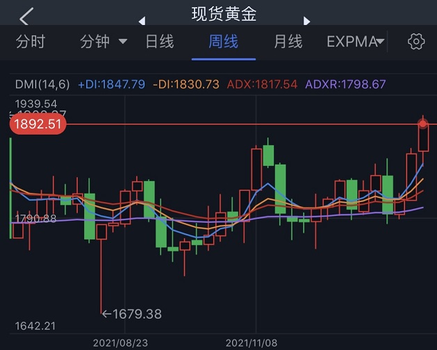 周五(2月18日)亚市盘中,现货黄金一度突破1900美元/盎司关口,目前回落至1893美元/盎司附近。