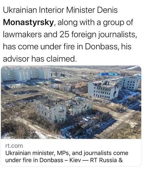 此外,根据CNN报导,莫纳斯蒂尔斯基在前往乌东前线视察时,法新社、CNN等新闻团队也在一旁随行,突然间遭到迫击炮炮击,炮弹落在众人附近,众人赶紧寻求掩护,躲避炮火,所幸无人受伤。当时有10多发迫击炮炮弹落在外围几百米内。