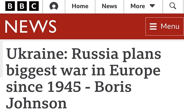 英国广播公司(BBC)报道称,英国首相约翰逊表示,有证据表明俄罗斯正在策划“1945年以来欧洲最大的战争”。