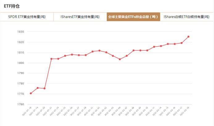 根据黄金信息网站www.24K99.com对全球8大主要黄金ETF的监控数据显示,截至2021年2月18日,全球8大黄金ETFs持仓总量为1825.217吨,与上一交易日增加6.13吨。