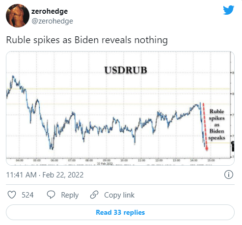 拜登发表讲话后,俄罗斯MOEX指数涨5.9%。美元兑俄罗斯卢布小幅走低,跌幅扩大至0.89%。