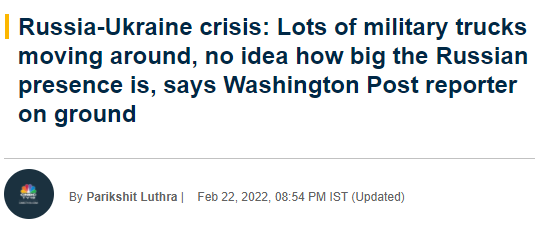 在现场进行报道的《华盛顿邮报》驻外记者玛丽·伊尔柳希纳(Mary Ilyushina)在接受CNBC-TV18采访时表示,目前还不清楚俄罗斯的意图,尽管普京声称他命令军队进入这些分裂地区是为了“维持和平”。
