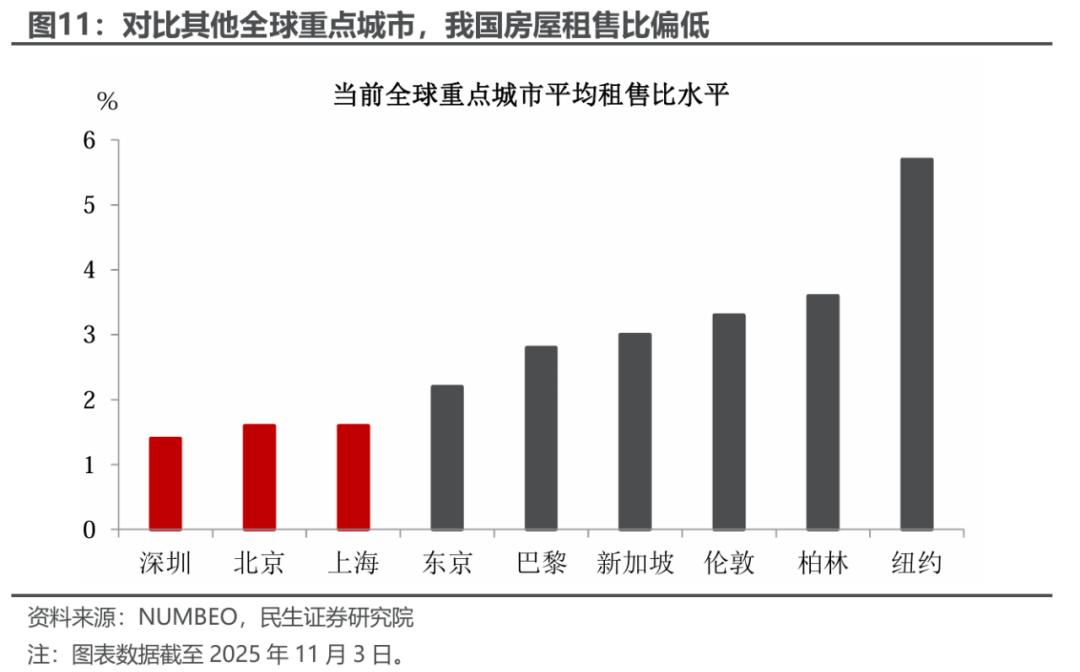当然,除了核算方法需要一个过渡的过程外,我国地产市场还面临供需不平衡、租金偏低等问题,这也成为我国自有住房服务消费偏低的重要原因。
