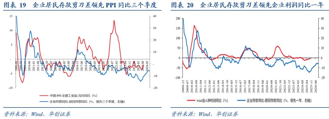 1)第一个结构是:企业存款与居民存款的相对增速(或旧口径M1同比)。其对应的是经济循环是否更加畅通,利润预期是否在改善。若能持续修复,对股市偏利好。历史经验来看,企业居民存款剪刀差(或旧口径M1)这一指标领先PPI价格三个季度左右,领先上市企业利润大致一年左右。我们目前的判断是,总量M2同比回落的背景下,只要旧口径M1同比平稳,就意味着经济循环依然在逆势改善,对旧口径M1的“优劣”标准会比2025年更加宽松。
